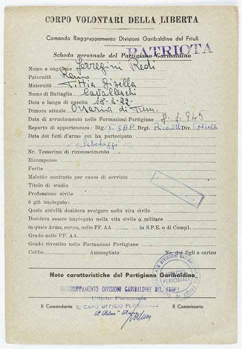 ANPI - Comitato provinciale di Udine - Fondo Schede Anagrafiche
