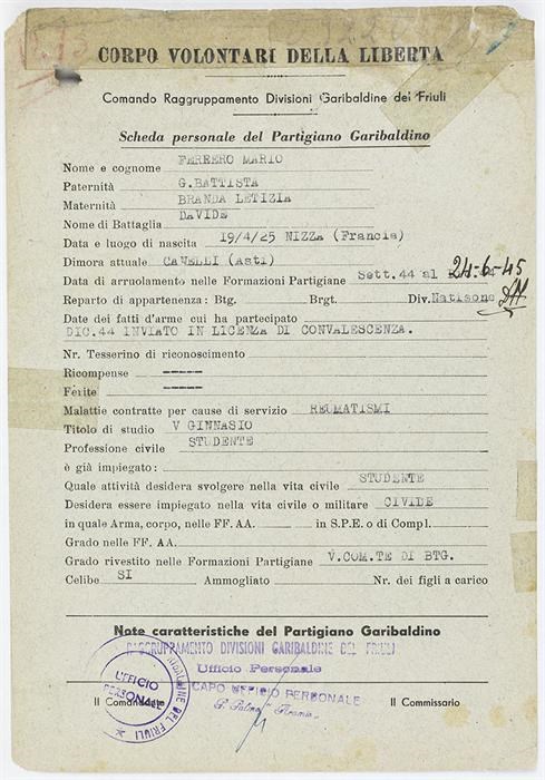 ANPI - Comitato provinciale di Udine - Fondo Schede Anagrafiche