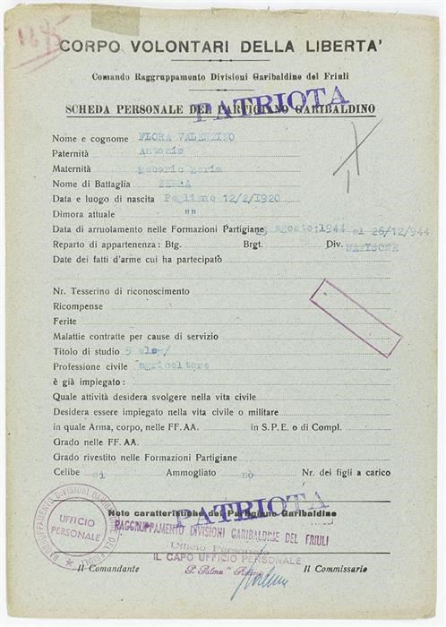 ANPI - Comitato provinciale di Udine - Fondo Schede Anagrafiche