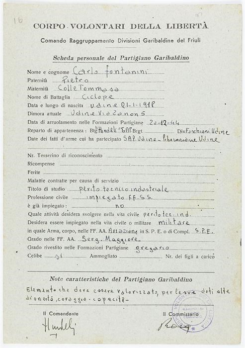 ANPI - Comitato provinciale di Udine - Fondo Schede Anagrafiche