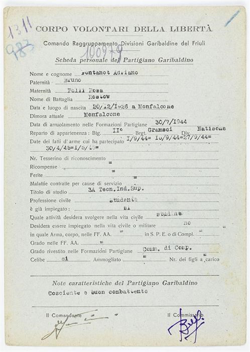 ANPI - Comitato provinciale di Udine - Fondo Schede Anagrafiche