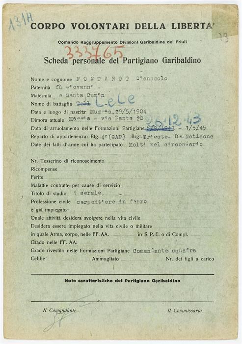 ANPI - Comitato provinciale di Udine - Fondo Schede Anagrafiche