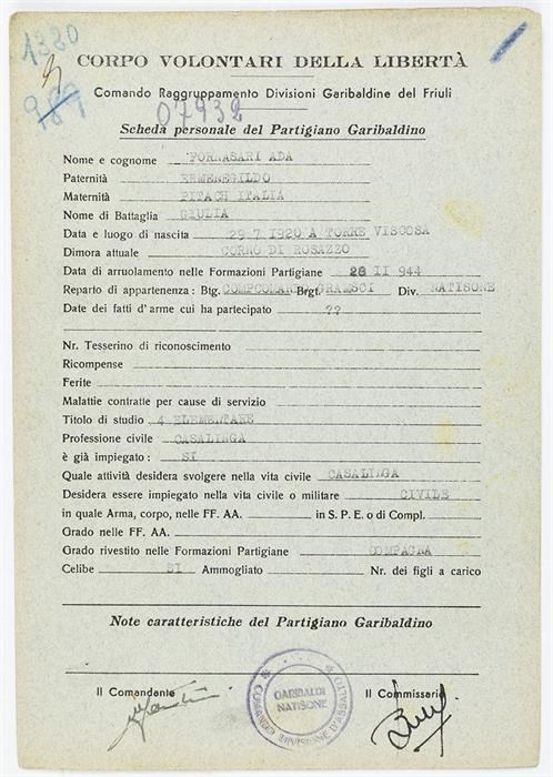 ANPI - Comitato provinciale di Udine - Fondo Schede Anagrafiche