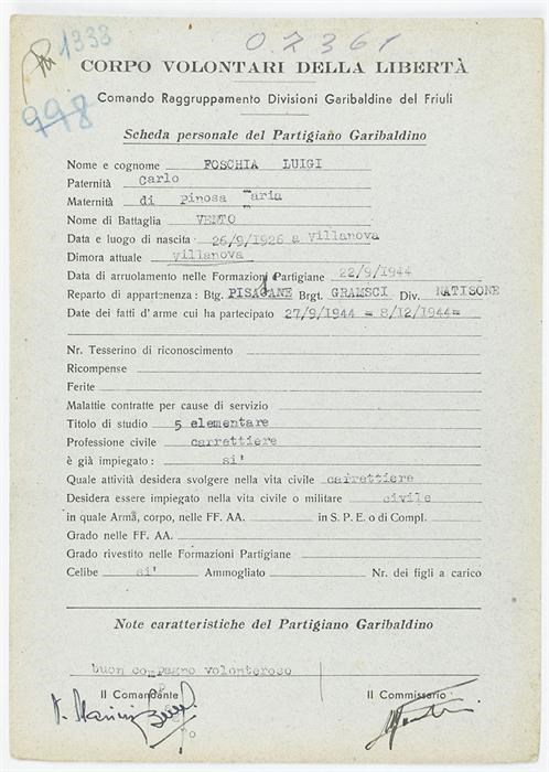 ANPI - Comitato provinciale di Udine - Fondo Schede Anagrafiche