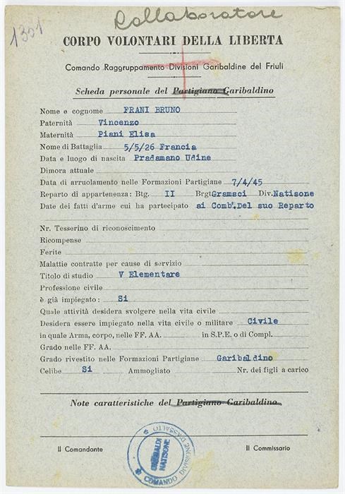 ANPI - Comitato provinciale di Udine - Fondo Schede Anagrafiche