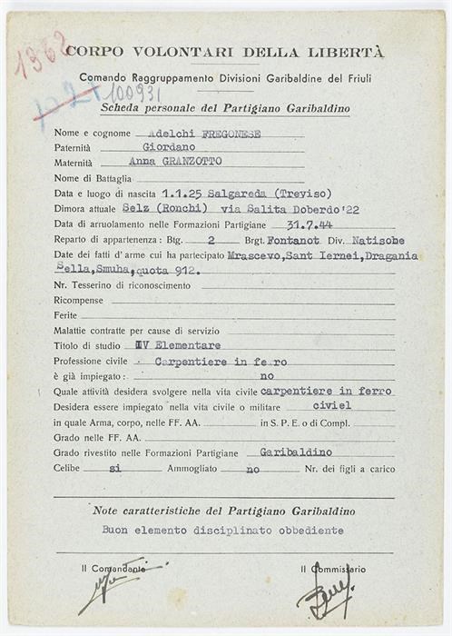 ANPI - Comitato provinciale di Udine - Fondo Schede Anagrafiche