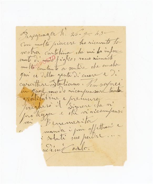Lettera di Lombardi Angelo