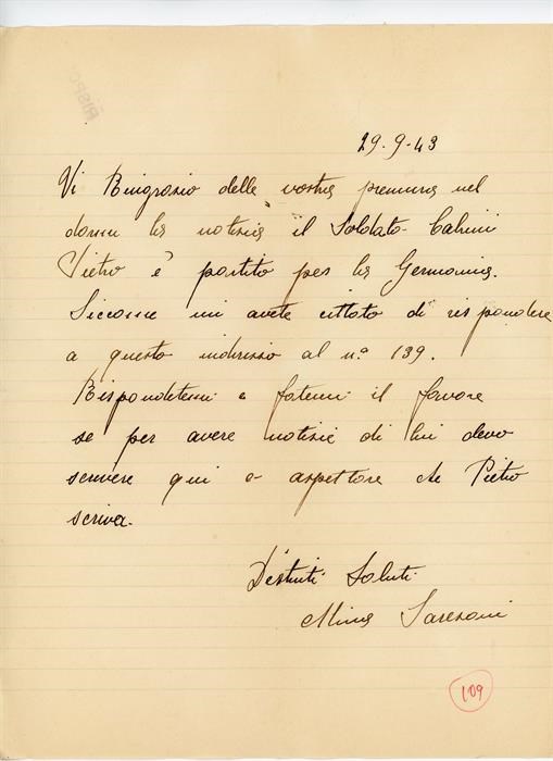 Lettera di Torello Cempella Irma