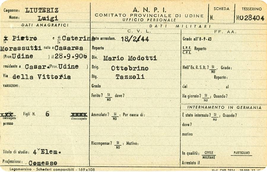 ANPI - Comitato provinciale di Pordenone - Archivio Storico ANPI - Comitato provinciale di Pordenone - Schede del partigianato