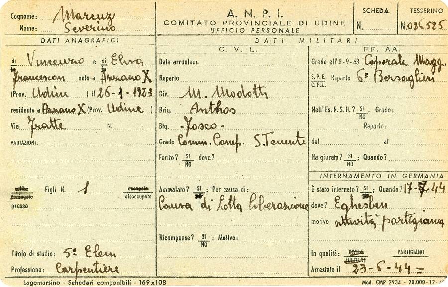 ANPI - Comitato provinciale di Pordenone - Archivio Storico ANPI - Comitato provinciale di Pordenone - Schede del partigianato