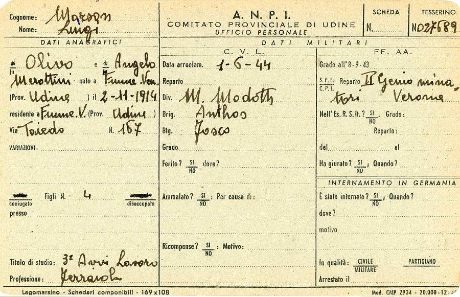 ANPI - Comitato provinciale di Pordenone - Archivio Storico ANPI - Comitato provinciale di Pordenone - Schede del partigianato