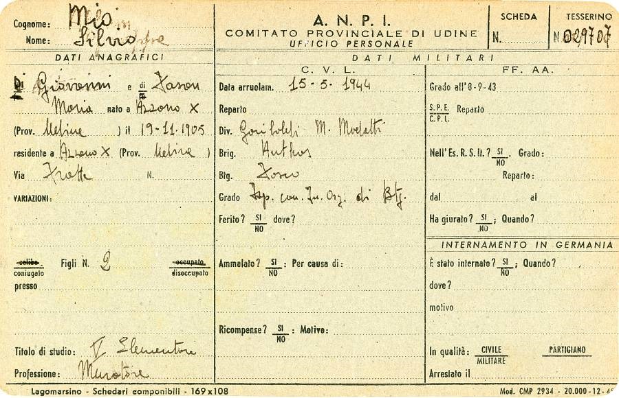 ANPI - Comitato provinciale di Pordenone - Archivio Storico ANPI - Comitato provinciale di Pordenone - Schede del partigianato