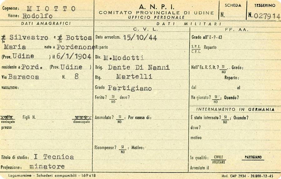 ANPI - Comitato provinciale di Pordenone - Archivio Storico ANPI - Comitato provinciale di Pordenone - Schede del partigianato
