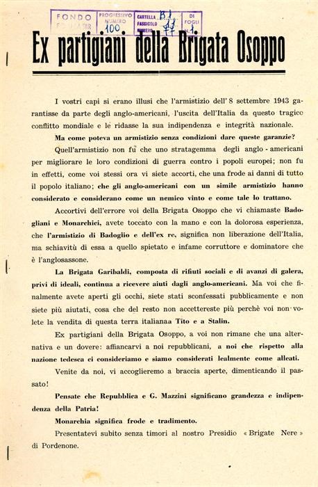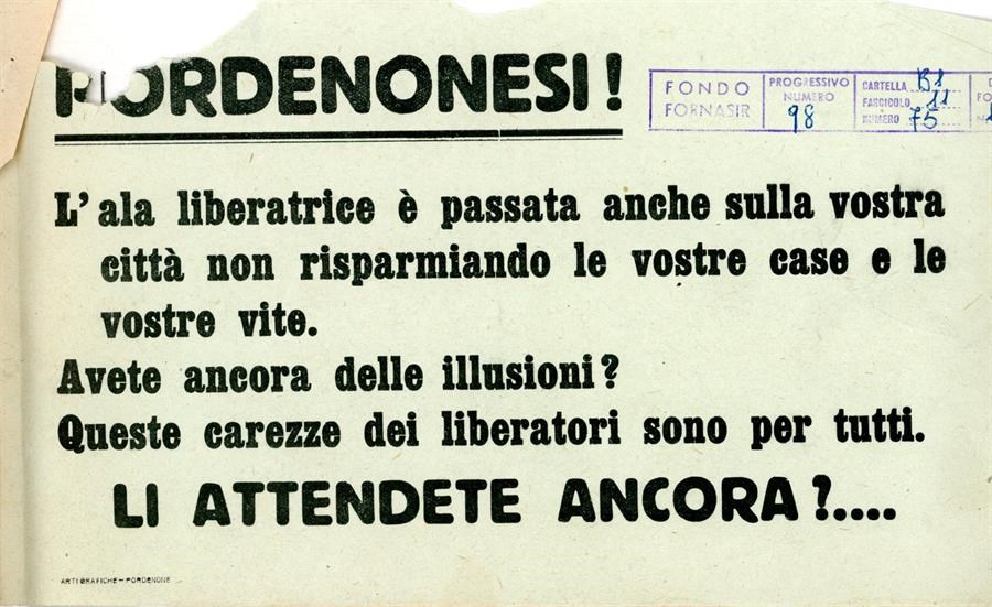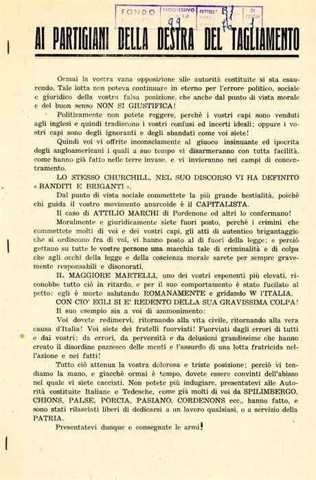 Volantini di propaganda antipartigiana indirizzati alle popolazioni della Destra Tagliamento.