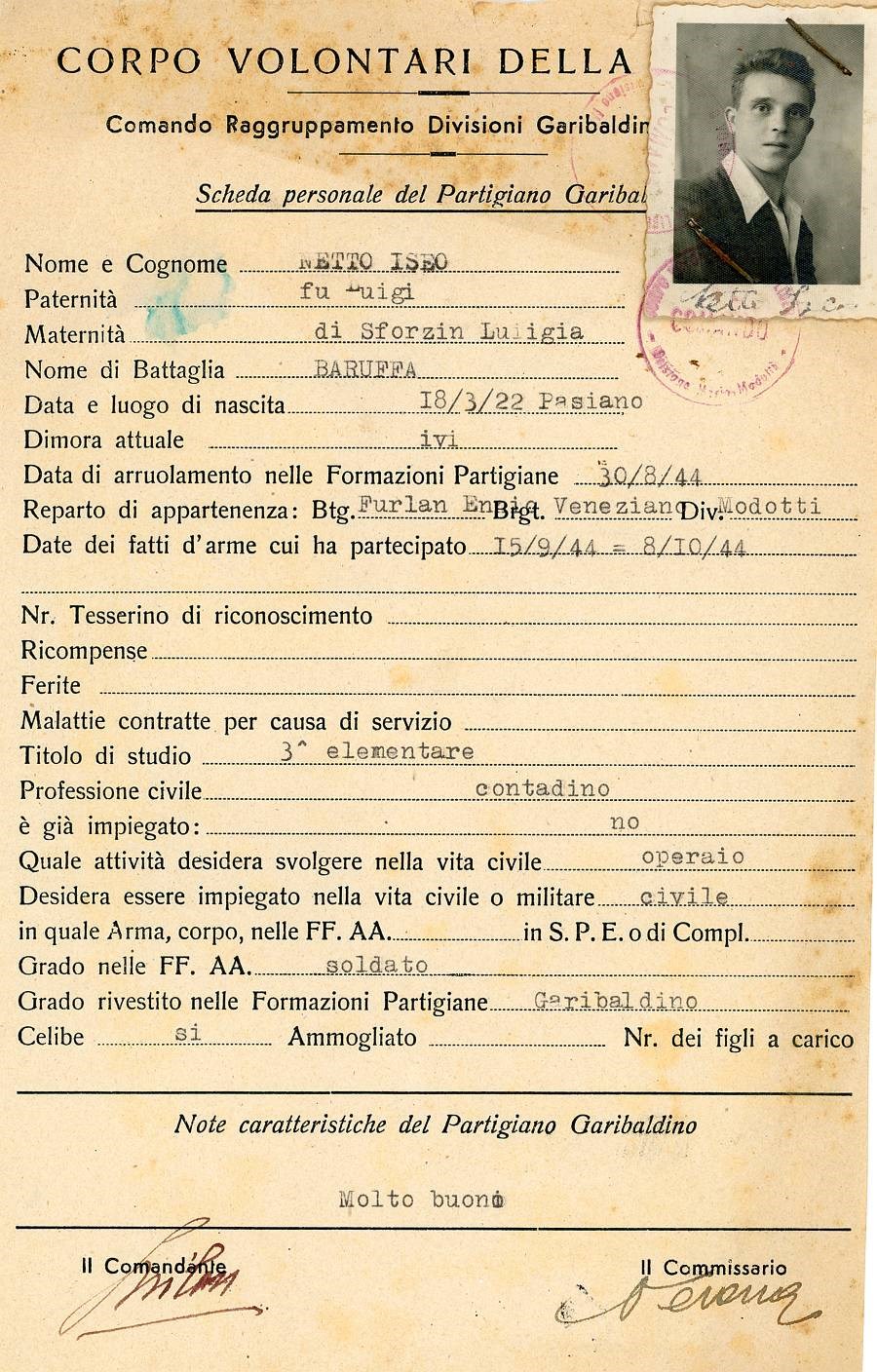 ANPI - Comitato provinciale di Pordenone - Archivio Storico ANPI - Comitato provinciale di Pordenone - Schede del partigianato
