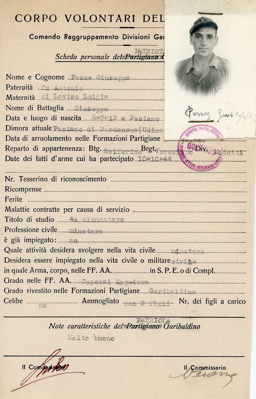 ANPI - Comitato provinciale di Pordenone - Archivio Storico ANPI - Comitato provinciale di Pordenone - Schede del partigianato