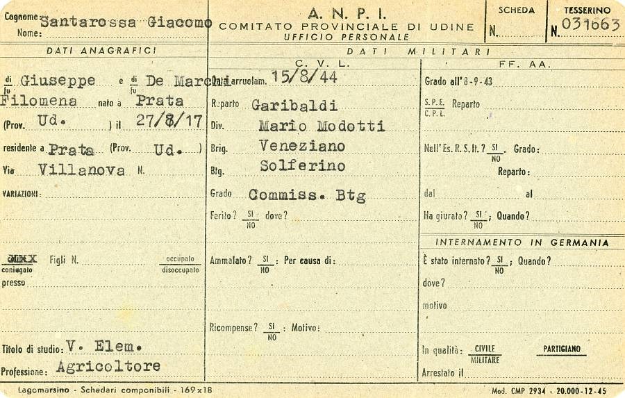 ANPI - Comitato provinciale di Pordenone - Archivio Storico ANPI - Comitato provinciale di Pordenone - Schede del partigianato