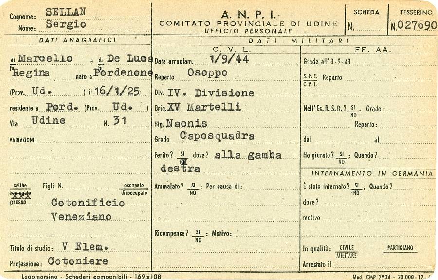 ANPI - Comitato provinciale di Pordenone - Archivio Storico ANPI - Comitato provinciale di Pordenone - Schede del partigianato