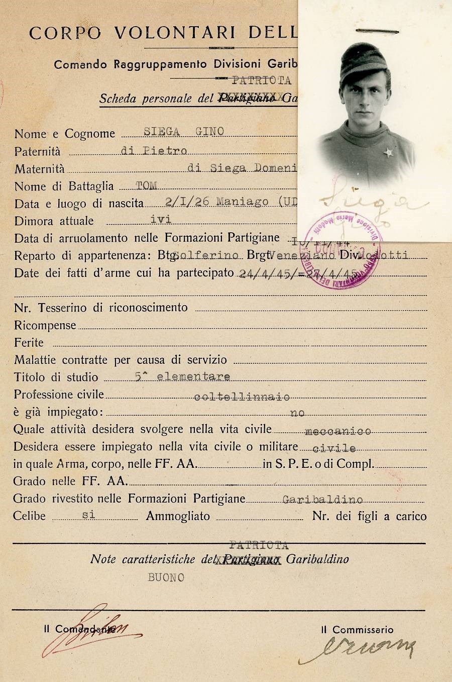 ANPI - Comitato provinciale di Pordenone - Archivio Storico ANPI - Comitato provinciale di Pordenone - Schede del partigianato