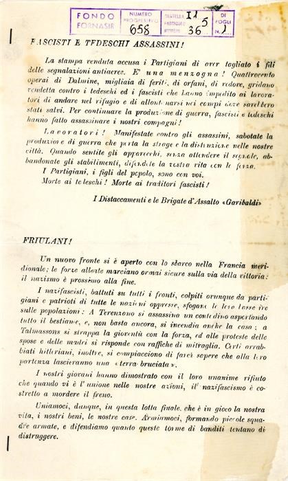 Fondo: Rappresaglie eccidi arresti in Friuli