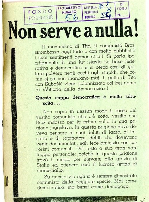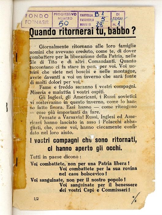 Volantini tedeschi diretti alla popolazione del Friuli e della Venezia Giulia.