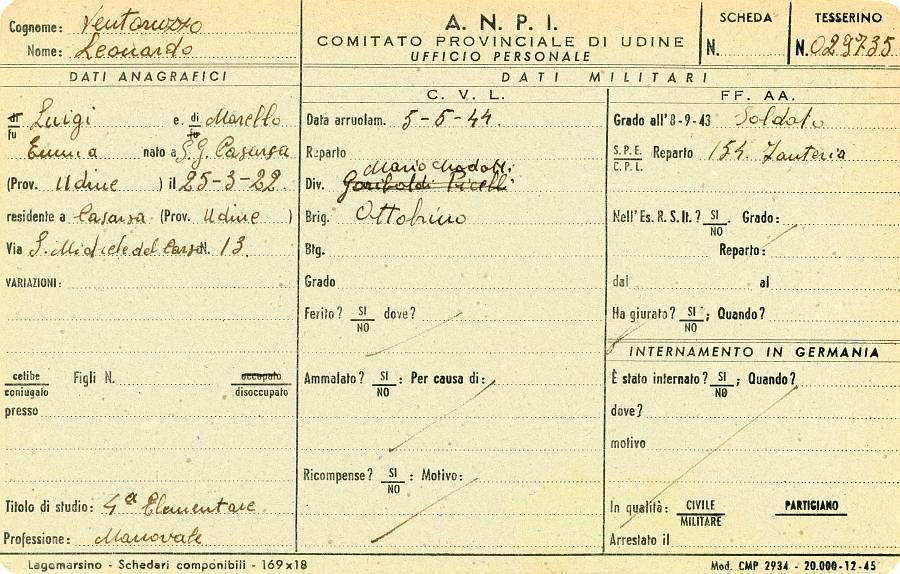 ANPI - Comitato provinciale di Pordenone - Archivio Storico ANPI - Comitato provinciale di Pordenone - Schede del partigianato