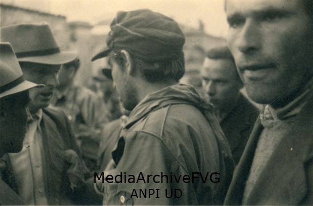 Il Comandante partigiano Rodolfo Lanzardi (di spalle), nome di battaglia Corrado