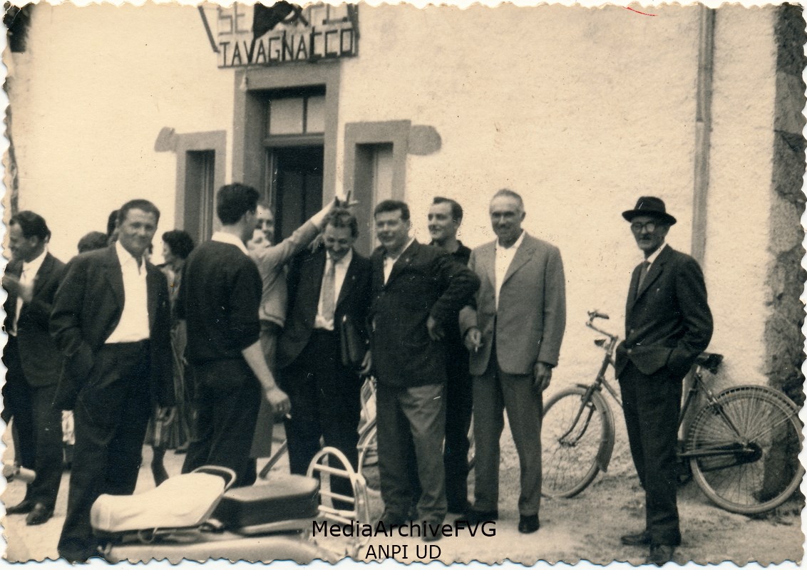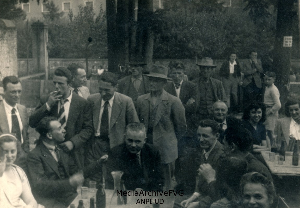 Partecipanti alla Festa dell'Unità davanti alla sede della sezione del Partito Comunista Italiano: Mario Lizzero “Andrea”