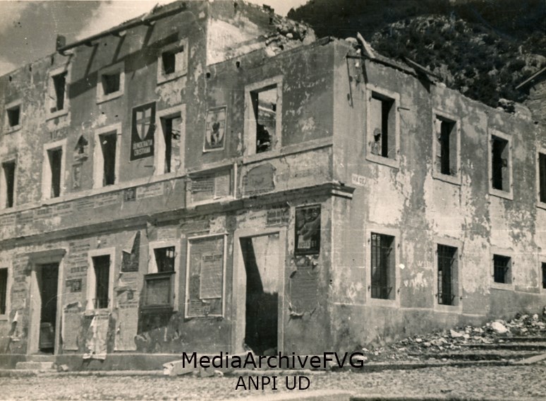 Una casa semidistrutta dall'incendio causato dai nazifascisti