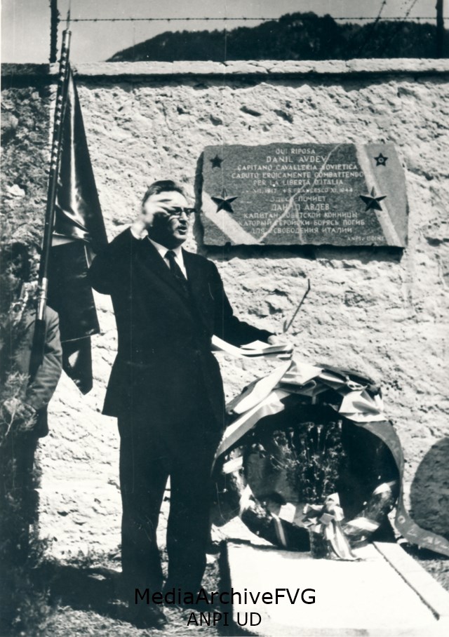 Commemorazione che ricorda il Capitano di cavalleria sovietica Danjl Avdeev, comandante del battaglione Stalin. Mario Lizzero “Andrea”