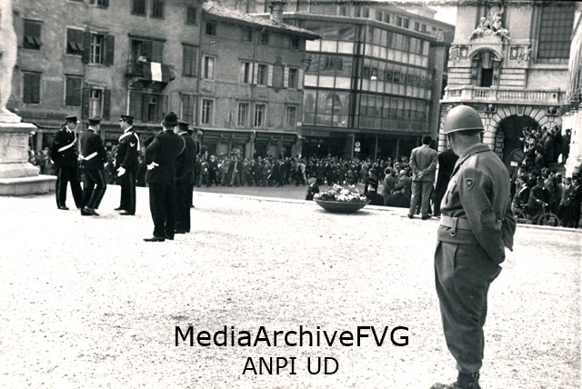 Ventennale della Resistenza: autorità militari in piazza Libertà