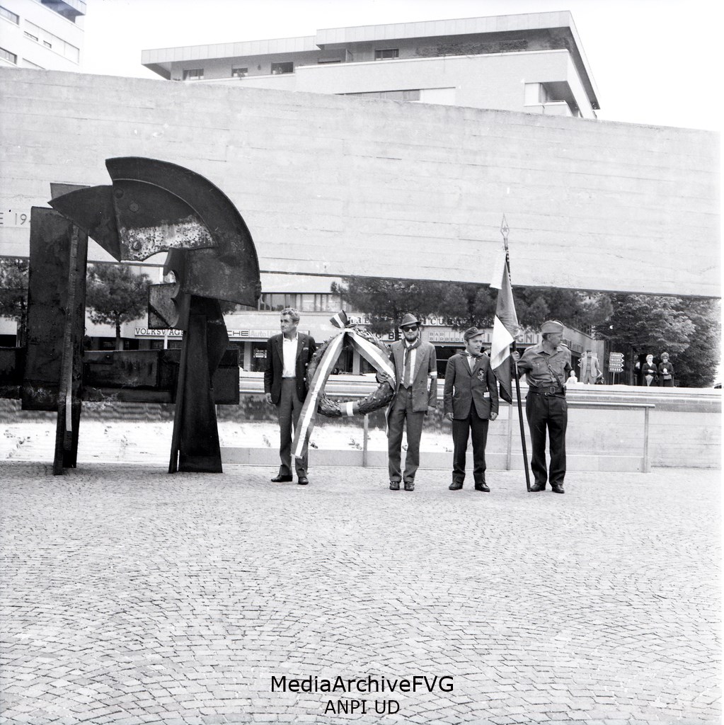 Celebrazioni per il 25 Aprile. I partecipanti all'interno del Monumento alla Resistenza in piazzale XXVI Luglio