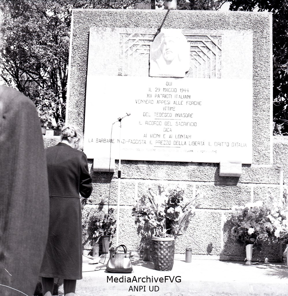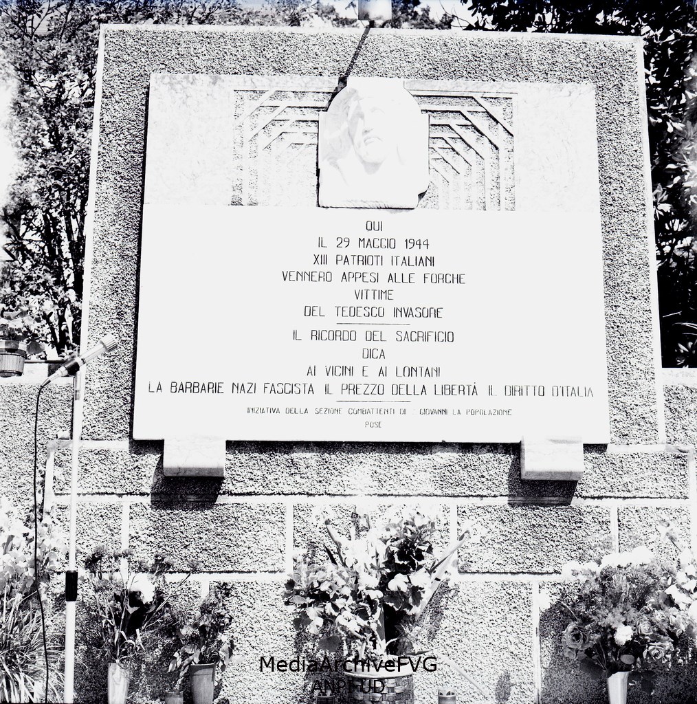 La lapide che ricorda i 13 partigiani impiccati dai nazifascisti il 29 maggio 1944