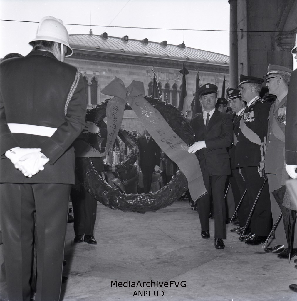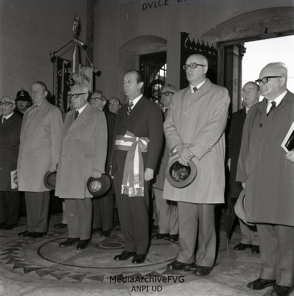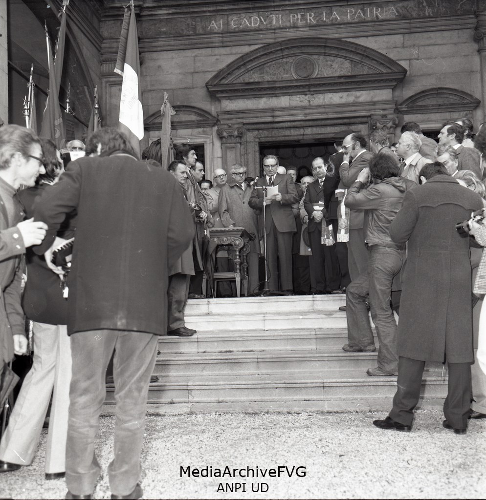Alcuni momenti delle Celebrazioni per il 25 Aprile. Sandro Pertini, Bruno Cadetto, Antomio Comelli e Mario Lizzero