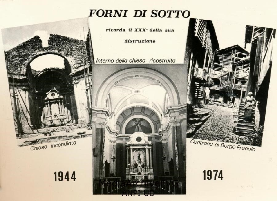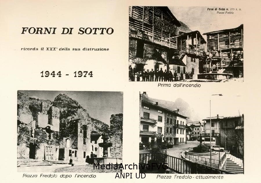 Cartolina commemorativa della distruzione di Forni di Sotto (1944-1974)