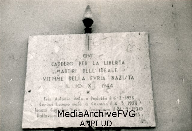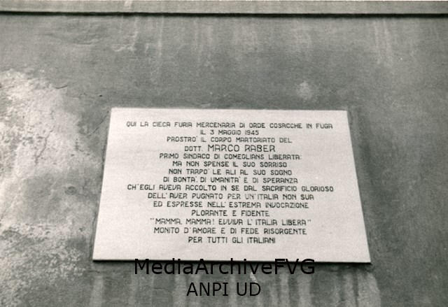 Lapide in ricordo di Marco Raber ucciso dai cosacchi il 3 maggio 1945