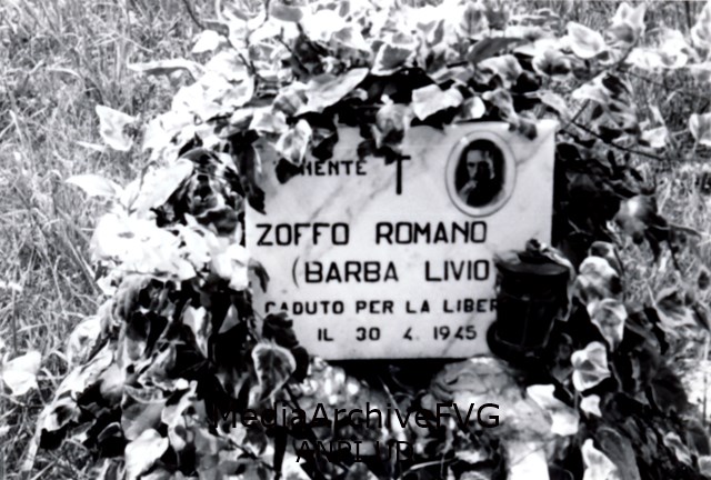 Lapide commemorativa all'interno del cimitero per Romano Zoffo