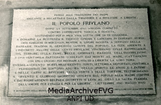 Lapide commemorativa relativa alla lotta di liberazione in Friuli