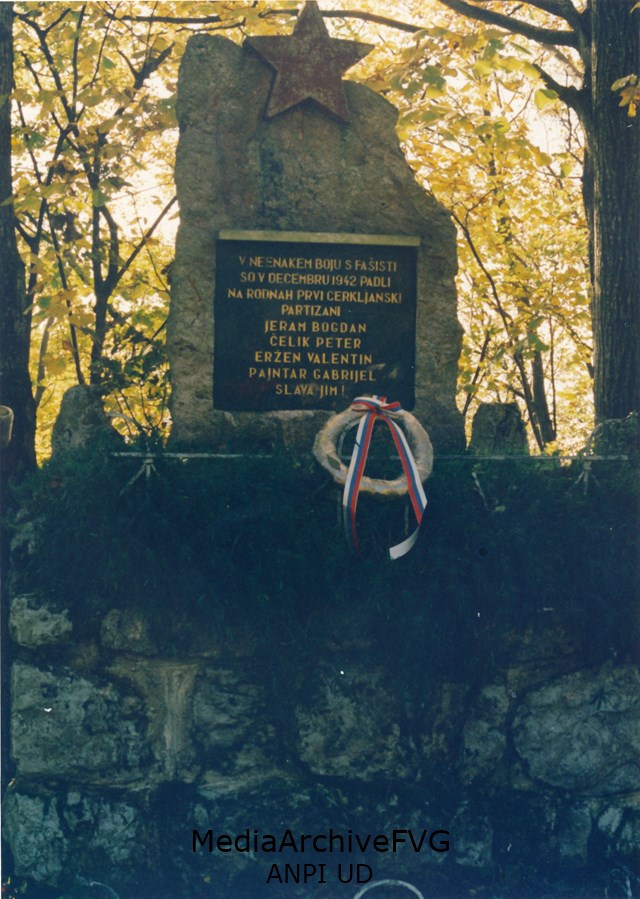 Lapide eretta a Bukovo in onore dei cinque partigiani sloveni fucilati