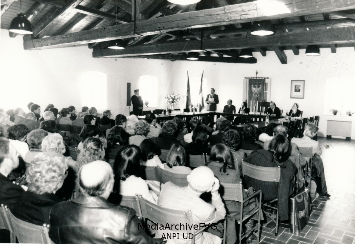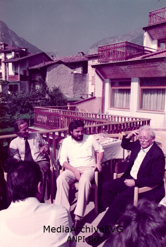 Mario Lizzero “Andrea” ripreso in un momento di pausa durante lo svolgimento del convegno “Repubblica della Carnia e Friuli”