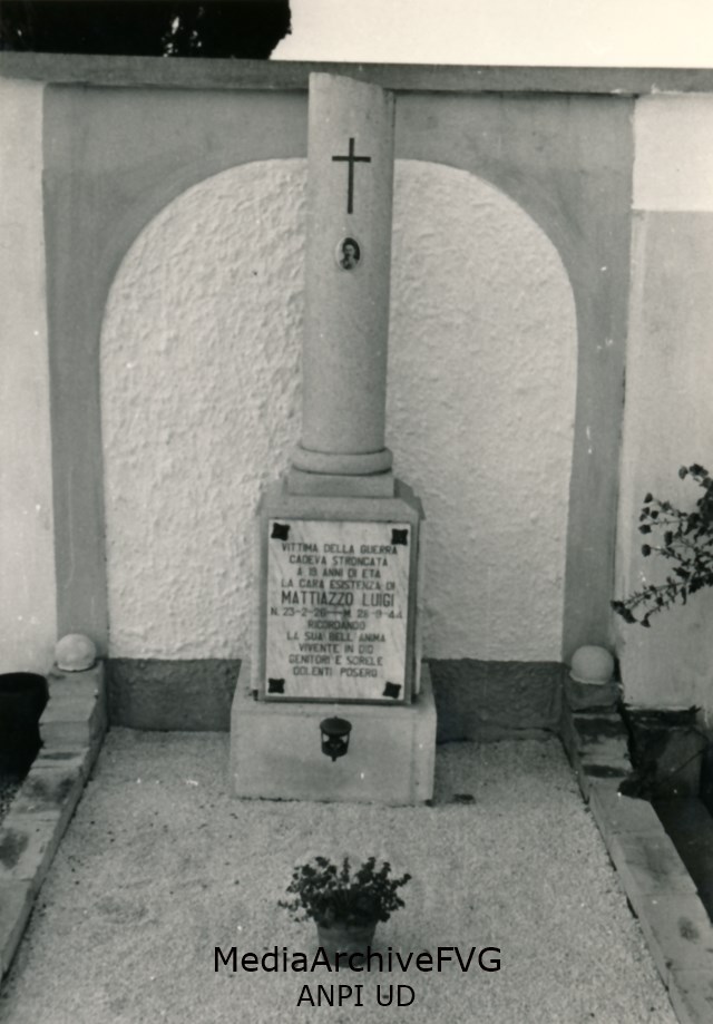 La tomba del partigiano Luigi Mattiazzo all'interno del cimitero del paese