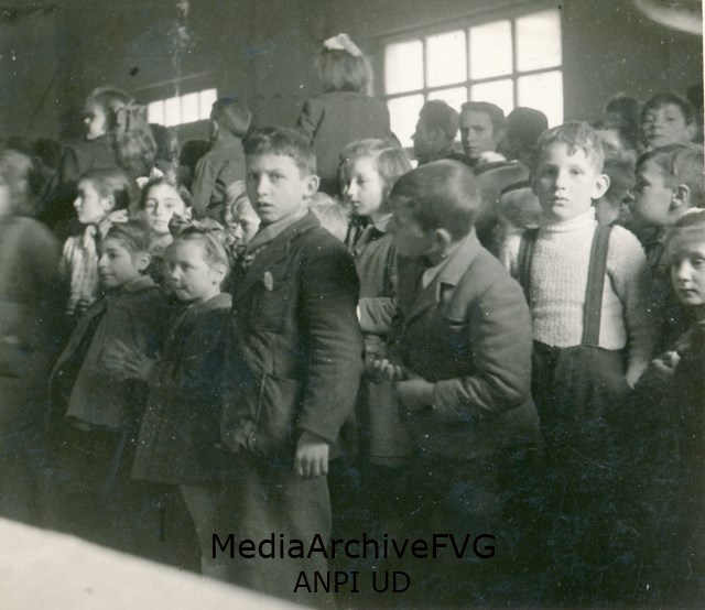 Gruppo di bambini all'interno di un edificio; forse un'opera assistenziale