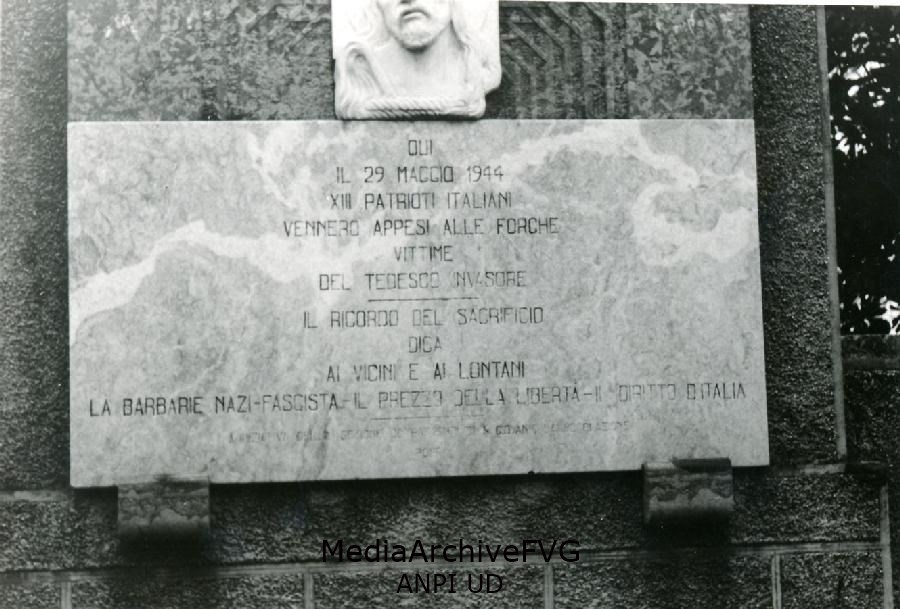 Lapide che ricorda i 13 partigiani impiccati a Premariacco