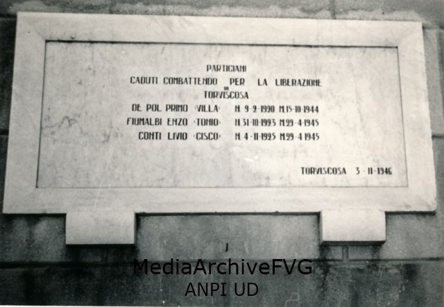 Lapide per Primo De Pol “Villa”, Enzo Fiumalbi “Tonio” e Livio Conti “Cisco”