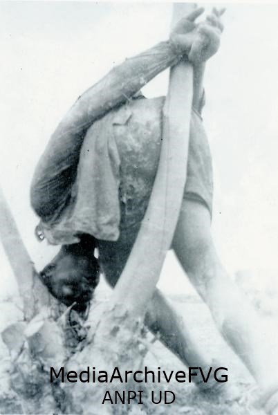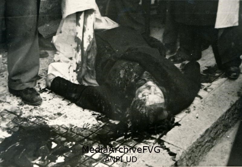 Il corpo senza vita di un partigiano dopo un'esecuzione da parte dei nazifascisti