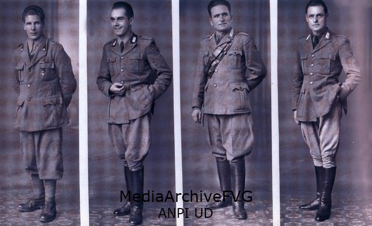 Ufficiali e soldati italiani della Divisione Pinerolo ripresi nello studio del fotografo Nicolaus Sturnavas