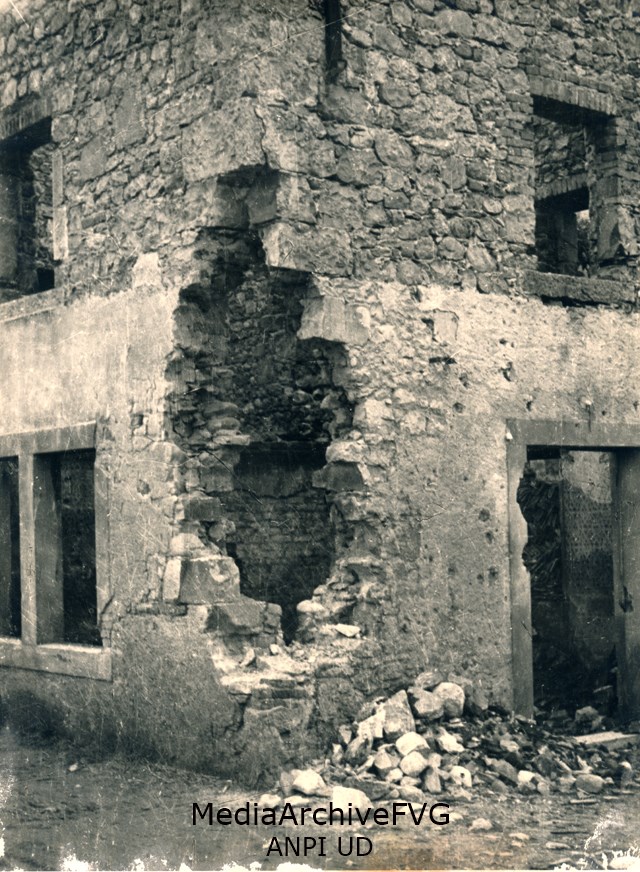 Casa del paese danneggiata dai colpi dell'artiglieria tedesca