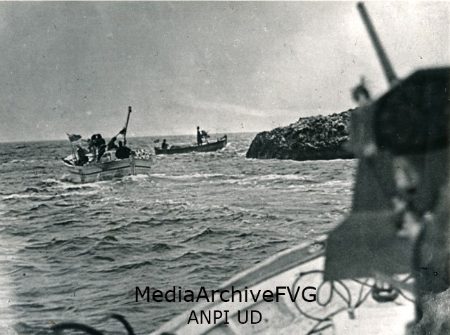 Imbarcazione partigiana di vedetta lungo le coste dell'isola di Hvar (Lesina)