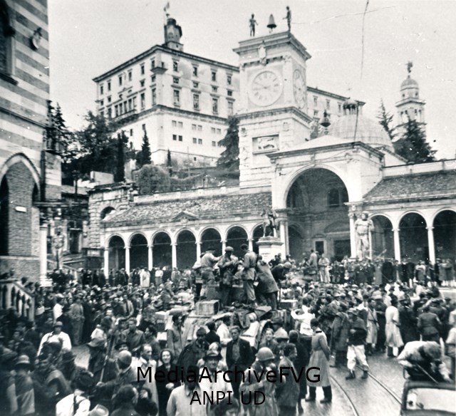 Liberazione Udine: i cittadini udinesi , soldati alleati e partigiani