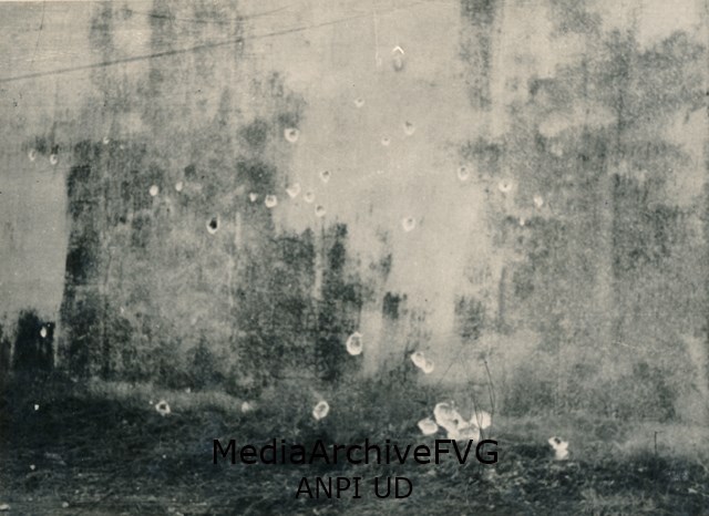 Muro del cimitero con i fori dei proiettili: esecuzione di partigiani